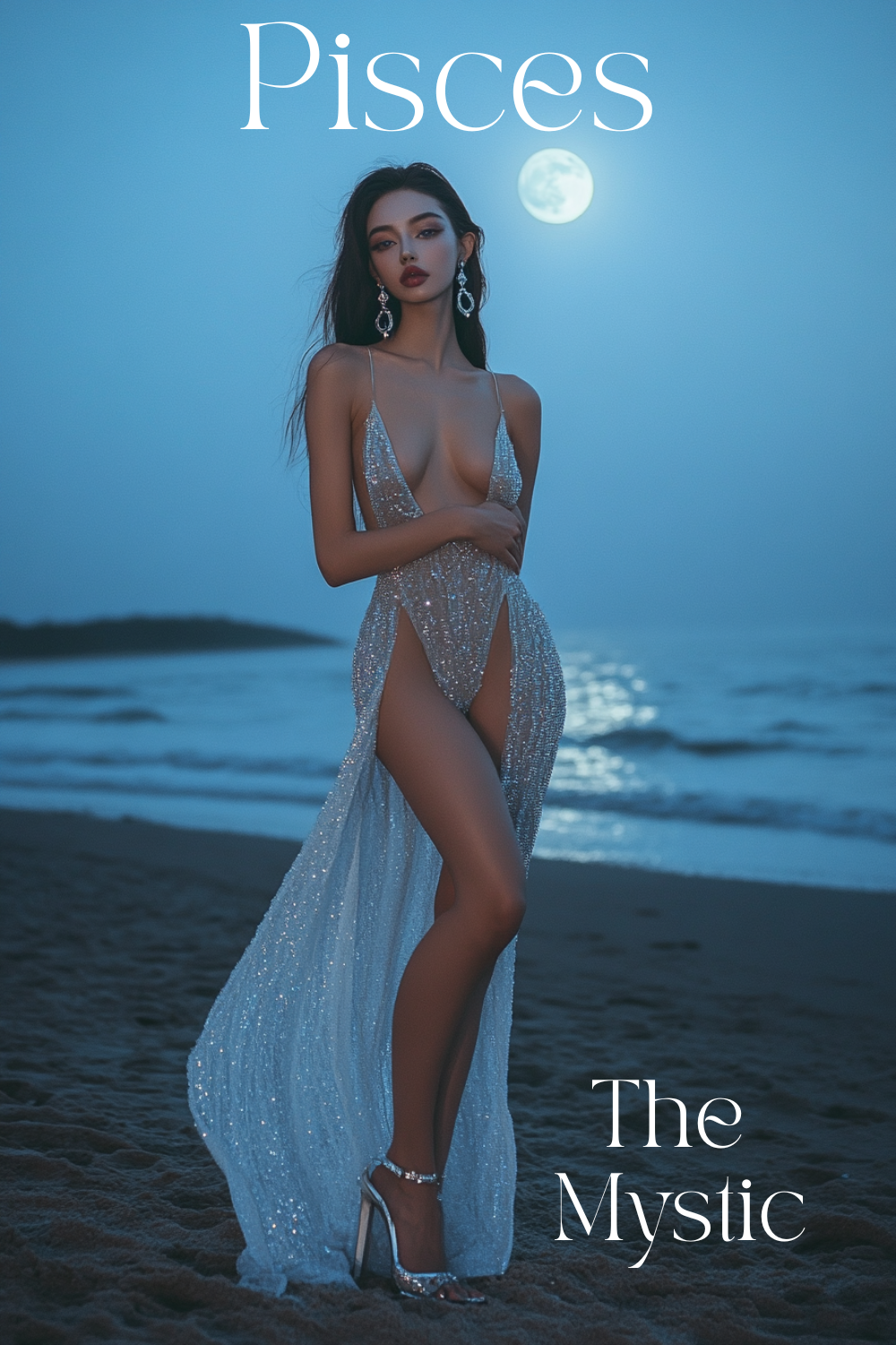 Where the veil is thin, and the mood is magic. The Pisces jigsaw puzzle captures the mystic energy of the zodiac’s most intuitive sign—elegant, emotional, and just a little otherworldly. A moonlit muse stands at the ocean’s edge in a glittering gown, radiating soft power, mystery, and dreamlike allure.