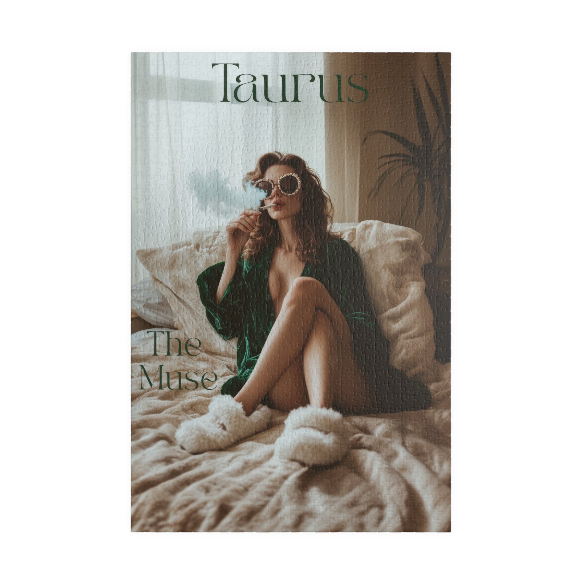 Unwind like a Taurus. This aesthetic jigsaw puzzle captures the essence of earth sign luxury: soft textures, rich velvet tones, and unapologetic comfort. Draped in a robe of deep green, our Taurus muse lounges in her element—relaxed, refined, and radiating slow-burn glamour. Every piece invites you deeper into her indulgent, sensual world.